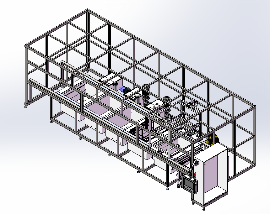工作程序:设计为全自动龙门式传递形式,传递工件料篮形式从左进右出;工件料篮通过自动传送系统进行自动进料和自动出料。